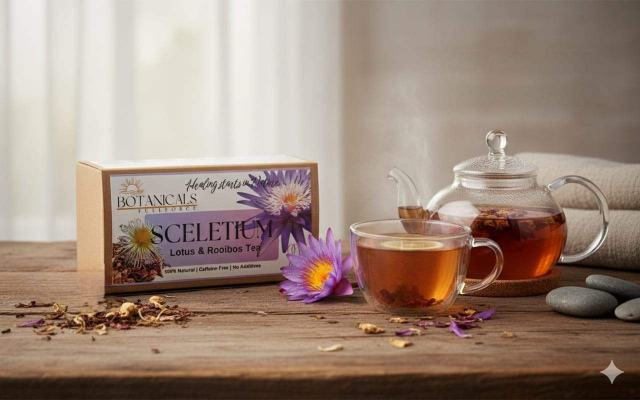 A calming, soul-nourishing infusion of sacred Blue Lotus, organic South African Rooibos, and wild-harvested Sceletium tortuosum (Kanna). This smooth, caffeine-free blend supports deep relaxation, emotional balance, and mental clarity — all with a touch of floral elegance and earthy sweetness.